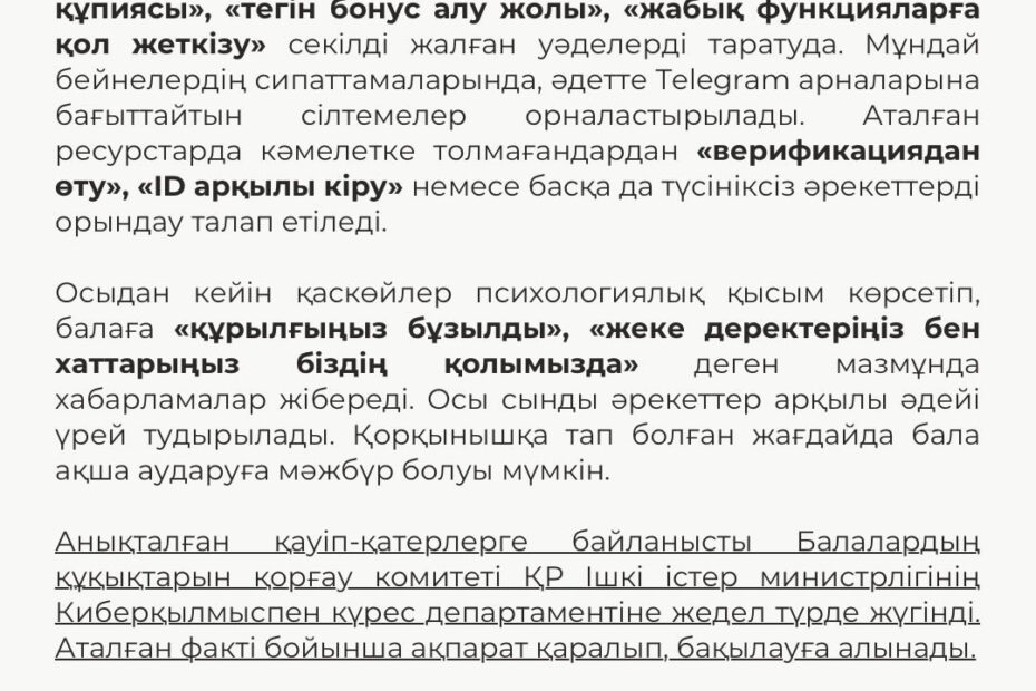 📌📌📌Ата-аналар мен педагогтер назарына! Балалар мен жасөспірімдерге бағытталған интернет-алаяқтықтың жаңа…Желтоқсан 20, 2025